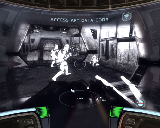 great looking game. Given the more ominous and gritty tone at work, it does a solid job of creating darker, more Empire Strikes Back-style environments. With a huge emphasis on bump-mapping and lighting, it has a realism to it rarely seen in sci-fi games.