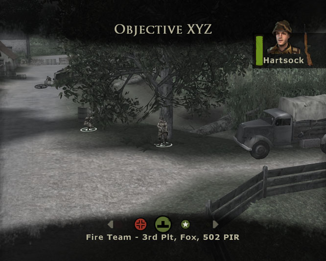 90% of the encounters in BiA involve a German encampment covering a main road, with some sort of side route available for you to outflank them with. You setup your men to suppress the enemy while you sneak off to the side and give 'em a good walloping, and it all works pretty well and good for the first few missions.