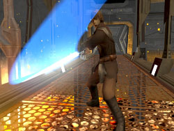 The sound effects and voices are all stunning as per usual, my only prob is how quiet this ace music sits in the mix. Some tweaking in the audio settings had it ramped up to full blast soon enough though, and believe me, it's worth it. There's nothing quite like hearing Battle of the Heroes blaring out at you in 5.1 while blowing away bad guys on Mustafar.