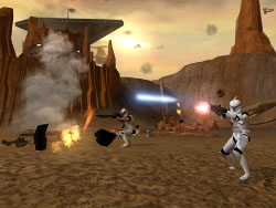 Graphically, it's using the same engine as the last game too. This sort of thing tends to piss me off usually, as there's nothing worse than a so called "sequel" that is really just some new levels thrown in with all the same tech as its predecessor. Battlefront II could be accused of just that, as it looks and handles so similar to the original that on the face of it they're hard to differentiate.