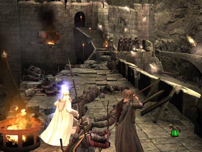 Playing as Legolas is where it's at for me. Firing off multiple arrows at once then ripping into Orcs with those curvy Elven blades of sex is about as fun as it gets, with the experience further solidified when a mate backs you up as Gimli. It's like Streets of Rage dragged into the new millennium, while simultaneously being a bit of a god send for us fans of the flicks too.
