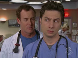 Episode of the year: 418, "My Roommates", where J.D. is kicked out of the apartment and roams the streets looking for somewhere to live. No better or worse than the eps that surround it, but the very first Scrubs I ever saw and the one that hooked me for life.