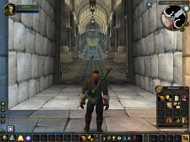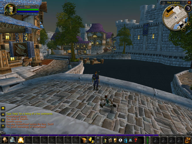 With all that in mind, WoW just about comes off looking rather striking as far as visuals go, even if not perfect, and really it's a heck of a lot prettier than I was expecting from early screenshots. Take the stunning city of Stormwind for example; an enormous castle containing an entire town within its moat riding walls. Walking through its main gates into the bustling streets and meandering alleys for the first time was a wonderful experience.