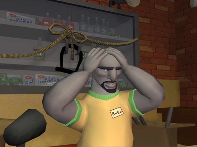 The undiscovered "star" of the show though in my book, is newcomer Bosco. He runs the convenience store in which much of this game centres around, coming across like some kinda Mr. T knock-off crossbred with The Simpson's Apu, provoking much in the way of giggles from Dig's obnoxious hyena laugh in the process.