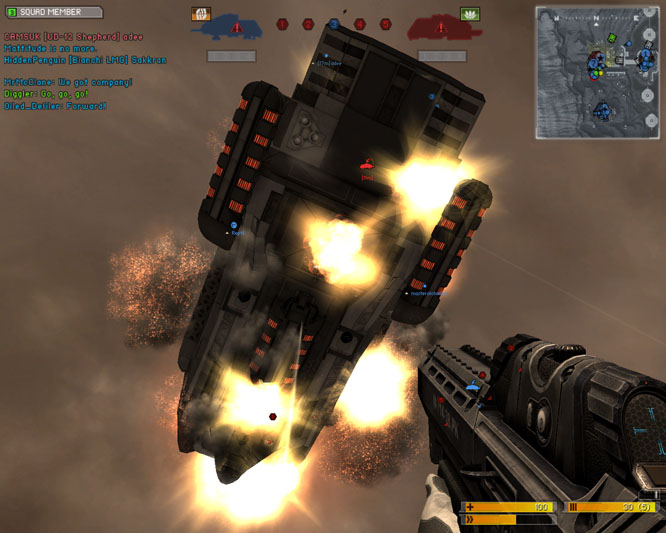 Which leads us comfortably onto the final class, the Commander. The basic concepts BF2 introduced haven't changed hugely here - you can still call up an overhead map, scan to find enemy positions, re-supply troops and perform good old artillery bombardments - but now you also have the pleasing ability to dish out EMP strikes as well. This is a new addition to the Battlefield series, not causing physical damage to your opposition, but instead disabling their vehicles for a short period while also screwing around with their HUD displays (discerning friendlies from foes is considerably harder for instance). The ability to slow down the advance of an enemy tank convoy can prove impeccably useful while your team waits to respawn, and subsequently proves a valuable new addition to the Commander's arsenal. It's especially cool at pulling down flying vehicles, as it somewhat hilariously cuts their engines in mid-air...