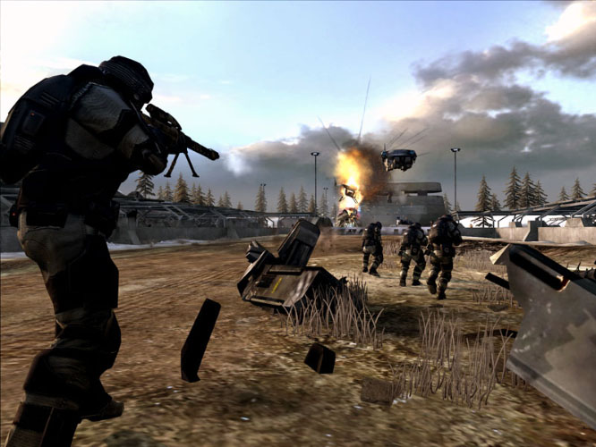 Time period aside though, this plays all but identically to BF2 on first glance. Utilising the same engine, similar visuals, identical controls and that same old Battlefield outpost capturing gameplay, it feels almost more mod for a while than full-blown sequel. After a little more exploration though, it does start to take on more character of its own, and that's primarily down to a wee little thing called "Titan Mode".