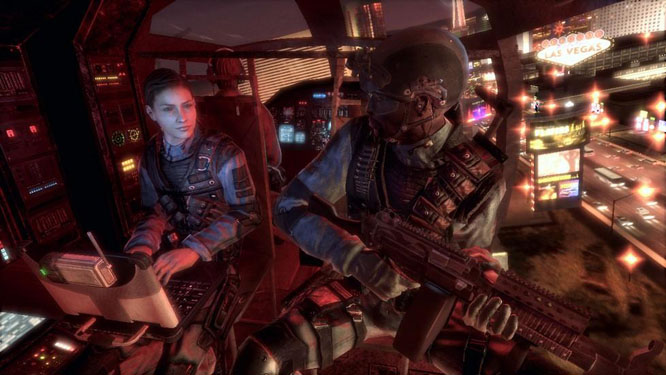 More than anything though, I was surprised at the stunning atmosphere present in this game. Realistic, squad-based shooters have a tendency to fall into sterility, with little to no personality driving the experience forward, but this one really sucks you in. Yeah, the storyline is overblown pap that might as well not even be there - with quite possibly the worst ending ever seen in a game - but the city of Vegas itself proves the true star of the show, with those endless streams of colour illuminating the night time sky more like something outta Heat or the recent Miami Vice remake than a video game. This is backed up by a fab mixture of orchestral fanfares and dark electronic ditties that positively drench the sucker in vibe. Thrown in with some surprisingly gritty language and a single player campaign just perfect in length, Vegas proves fab solo material.