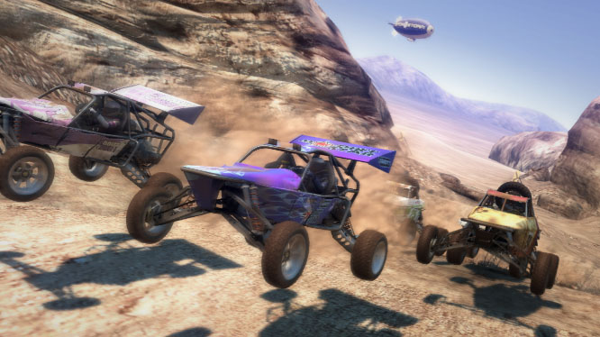 Similar in style to Burnout, MotorStorm is essentially that game taken off-road. You'll blaze across wide-open desert landscapes, beautiful, rocky mountainsides, and daunting Tatooine-esque canyons by way of mammoth 15 car racing orgies pushed to their most ludicrous extreme. Stupidly fast nitrous boosting comes as standard too, although unlike Burnout, here in MotorStorm you have to keep a constant eye on your temperature gauge, or that mud-stained car be goin' kaboom.