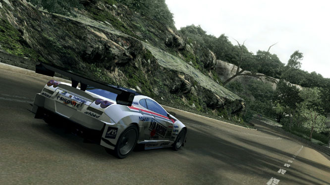 Visually, it's almost up there with Gears of War for me too. Played from the first person view - the only way to truly see this game in its element - it looks like some kinda crazy race footage captured through a hood-cam, jostling and bouncing around all over the place with alarming realism. The sheer detail, amazing physics and glorious track design continually see your jaw dropping to the ground like a fluffer. Some ever so slightly jaggy shadows prove the only real fly in the ointment here to what is, that aside, one of the most flat-out glorious looking games you will ever see.