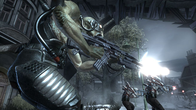 You play Sgt. Hale, a US Ranger shipped to England as part of a strike team circa 1950. Fear not though, this is no World War II game. Resistance takes place in an alternate timeline you see, one in which the war never happened, and Europe was instead invaded by friggin' aliens. Named the Chimera, they're fast, ugly and inexplicably know how to shoot guns. They've also wiped out every country in Europe, including 90% of the UK. Enter Hale.