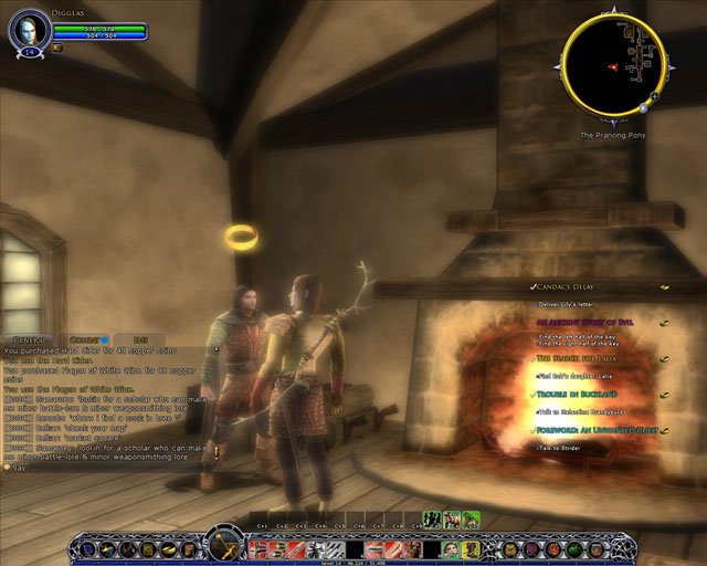 | | Along with the typical "dark" fantasy quests like this, LOTRO also boasts some fun and harmless ones too. There's even a Hobbit quest where you have to ferry pies across town stealthily while evading hungry Hobbits, like some kinda fat, furry Sam Fisher |