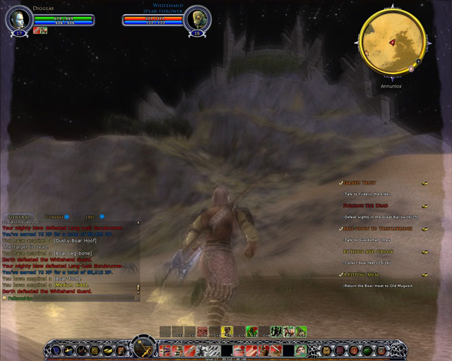| | Of course, more...umm, "traditional" MMORPG content rears its ugly head too. Murdering an endless stream of Middle-Earthen wildlife, for example |