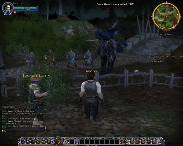 The Hobbit intro for instance, kicks off in the middle of the night with you chillin' out along the border of the Shire. Word has spread of "dark riders" around these parts though - Ringwraiths looking for Frodo, one presumes - and as you run around a little, getting to grips with the controls (not hard...thanks WoW), you suddenly find yourself catching brief glimpses of the suckers off in the distance. For the first time, an MMO actually feels a little...exciting.