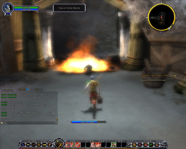 | | While many of the typical MMO-esque quests crop up as you'd expect, more adventurous and interesting stuff also makes an appearance. Here I'm putting out a fire by ferrying buckets of water back and forth while persuing an enemy |