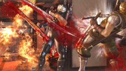 For better or worse then - much like in Gaiden's original Xbox incarnation from 2004 - few things still match up to unloading a relentless combo of craziness into a screen full of enemies, somersaulting outta the way of their counter-attacks, then decapitating the stragglers in an awesome display of kinetic ninjitsu. Yes sir, Gaiden's fighting system is just as vicious and brutal as ever, not to mention every bit as spectacular to simply watch. In fact, the sequel's pleasing new emphasis on blood and gore rackets such shenanigans up an extra level on top, with limbs dropping left, right and center, more heads detached from spinal columns than conjoining them, and jugulars spurting out blood all over the freakin' shop. Constantly.