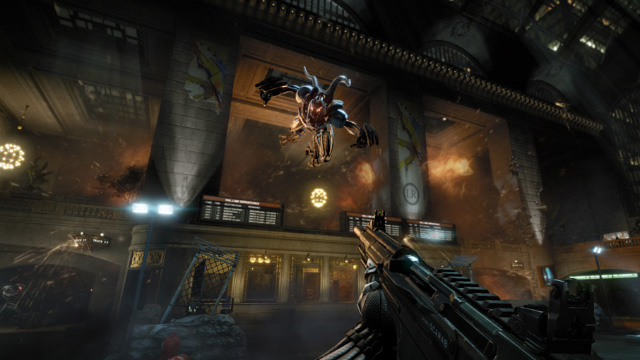 five friggin' times over the space of about two minutes. There's no denying the draw of DS' enticing universe though, and the superb, limb-removal combat that it's fashioned out for itself perfectly. The idea of exploring a heavily populated space station sounds intriguing too, next to the remote and somewhat repetitive ship of the first game. The multiplayer however, does not.