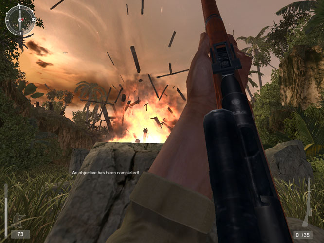Never the less, after some extensive tweaking it is indeed possible to find a sweet spot between pleasing visuals and playability, and at this point it's possible to enjoy the game somewhat. Something you really have to prepare yourself for though, is that Pacific Assault isn't your typical first person shooter. It plays more like a 'Nam game than the traditional inter-city style we usually get. Jungle games are a completely different beast, there's no charging down corridors mowing down enemies, you now have to stick to cover, plan your route, and watch for muzzle flashes. Its a fair bit slower, more methodical, and more realistic style of play, and admittedly isn't for everyone.