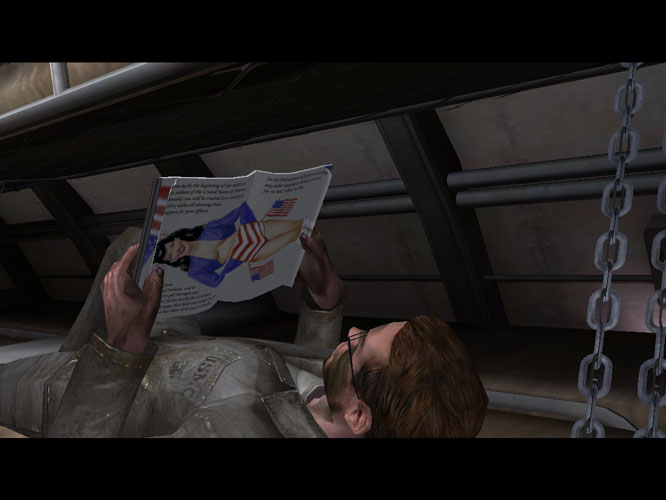 This is just one example of how Pacific Assault, perhaps more than any other game yet, takes a solid good stab at creating a movie like experience. As well as flashbacks, there's in-game cut-scenes, extensive voice-overs, well developed characters, tons of scripted dialogue, and sweet full motion video segments culled from real WWII footage. It's more the way these various elements are structured and used together that give it that film like quality though, and through each of these tools, you start to get to know and even respect your fellow soldiers, giving the whole game something of a Band of Brothers vibe.