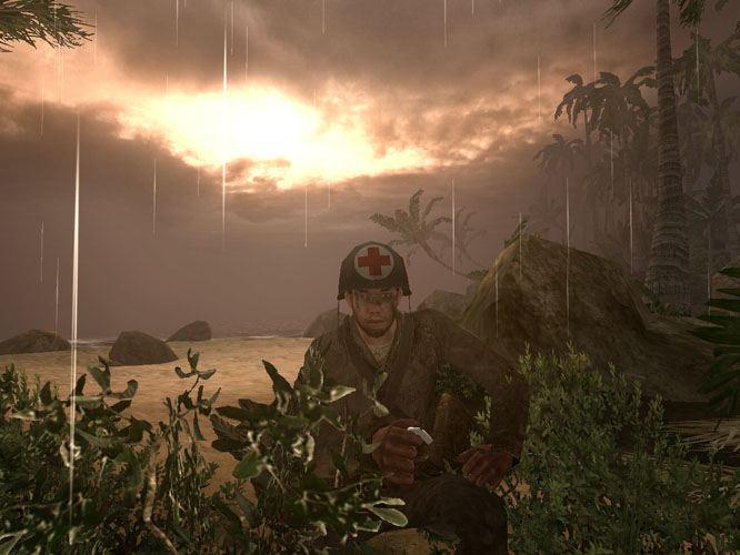 Another aspect I'm incredibly fond of is the death system. With health packs now incredibly scarce, Pacific Assault brings a much more original and realistic idea to the table; you now have to rely on medics to keep you alive. This dynamic provides some of the best moments in the game as a result. You can call the medic over at will you see, but just like you, he's only human, and needs cover and protection in order to stay alive. He's a great addition to the game, and I even caught him puking up at one point due to the messy nature of his work.