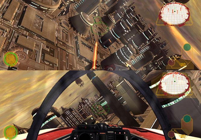 The more recent of the two, subtitled Rebel Strike, introduces land based missions to spice things up, which include charging around in an AT-ST and whizzing off on a speeder bike, which make it a slightly more original and interesting game however. What really impresses though is the co-op mode, which is an absolute blast, as well as the inclusion of the original Star Wars arcade game. Many a memory do I have as a young sapling, nailing TIE fighters in that old Star Wars arcade cabinet on Brighton Peer, complete with all its low quality movie samples and polygonal brilliance. To experience that again here in 2005 was somewhat magical for me.